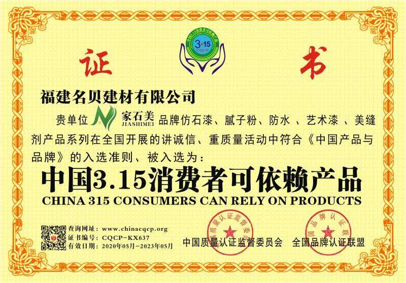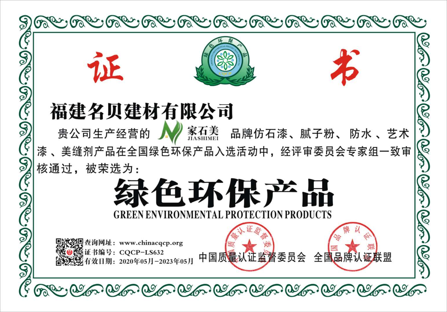 企業(yè)通過了質(zhì)量管理體系ISO9001:2000認(rèn)證及環(huán)境管理體系14001:2004認(rèn)證,堅持持續(xù)改進,不斷提升公司的質(zhì)量管理水平。良好的產(chǎn)業(yè)文化環(huán)境和管理理念、運行模式,不予余力地打造全球知名建筑環(huán)保涂料品牌,公司產(chǎn)品深受市場業(yè)主喜愛,獲得各界建材市場的“綠色通行牌”,被譽為國內(nèi)建材市場的綠色環(huán)保品牌。